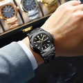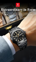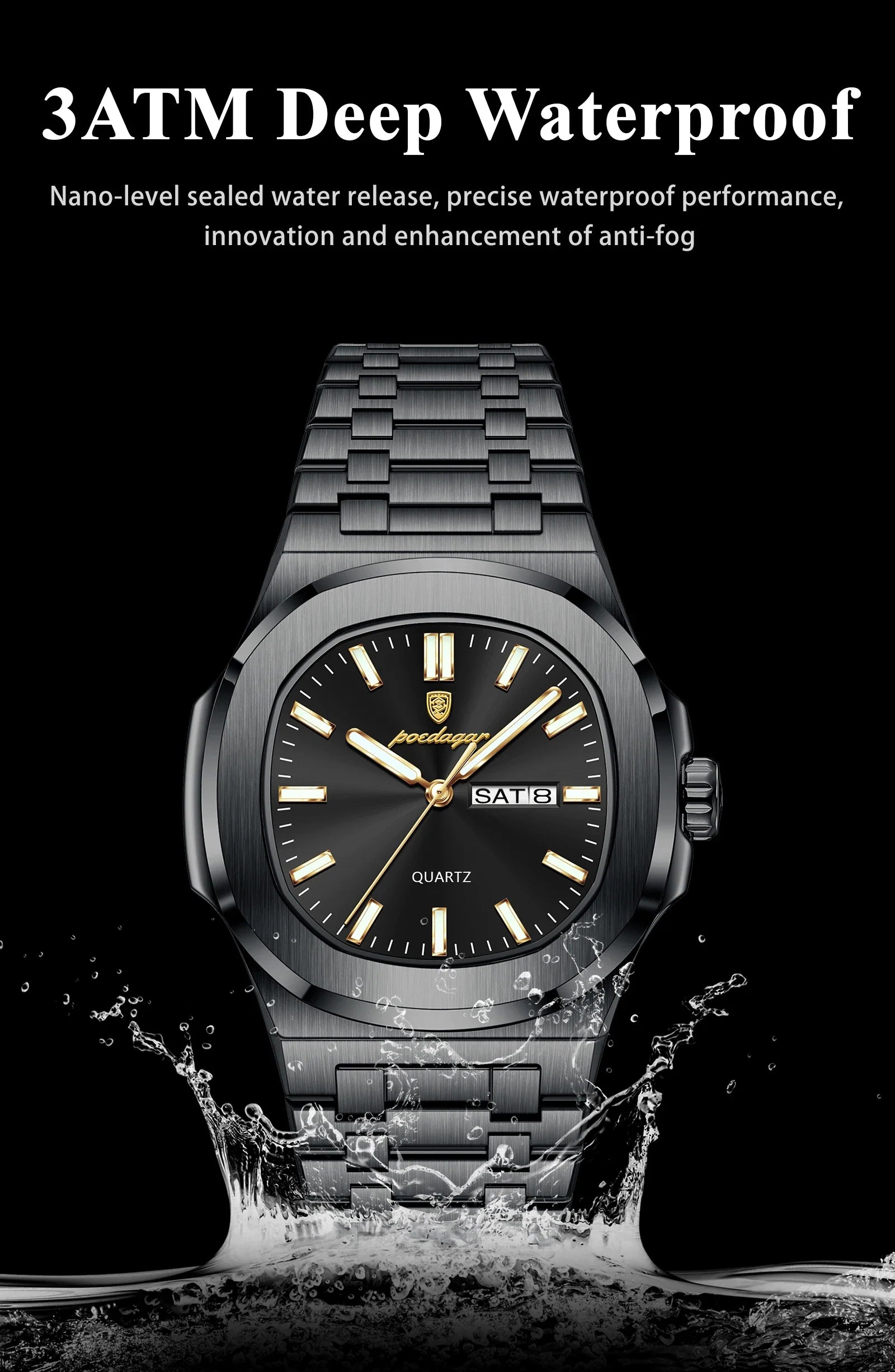 POEDAGAR Luxury Square Men's Watches Waterproof Luminous Date Week Men Watch Stainless Steel Fashion Quartz Man Wristwatch Reloj